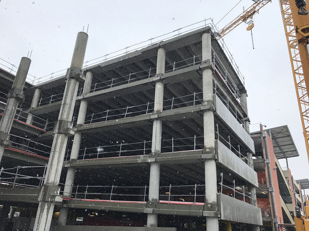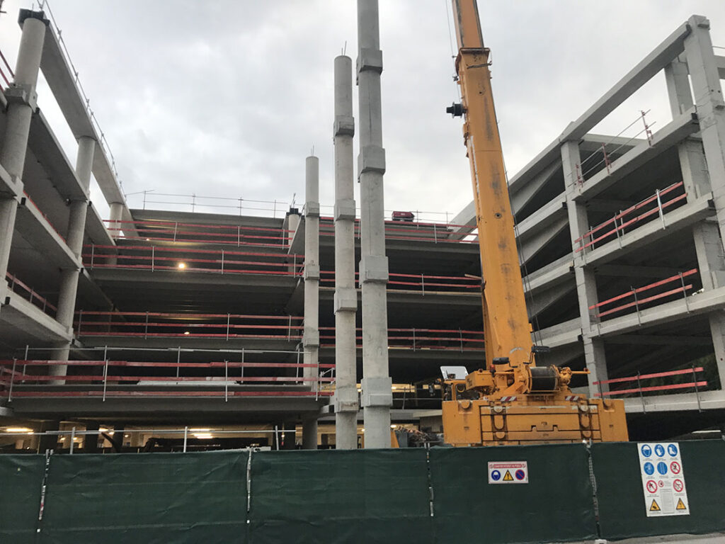 La struttura, composta da 6 piani fuori terra, viene utilizzata come parcheggio ed è stata interamente realizzata con elementi prefabbricati, comprese le rampe di accesso ai vari livelli. La particolarità di questo cantiere è stata l’esecuzione durante la notte dei lavori, questo per non interrompere l’attività del centro commerciale, garantendo così la continuità operativa della struttura.